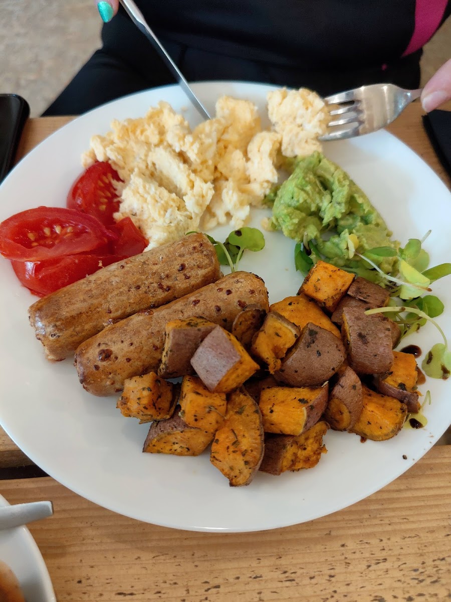 Good food with focus on build your own style foods. The protein options are some thing different. Coffee is good and staff n atmosphere are spot on. Adding extras to dishes is a little steep £2.00 for a dollop of greek yogurt. But overall was very good.
